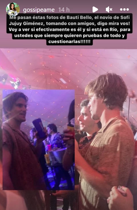 Pero, al parecer, Bautista Bello se fue de escapada loca a Río de Janeiro con amigos, y entre caipis y abacaxi, axé, bossa nova y demás, aparentemente terminó en un boliche a los besos con una chica que, claramente, no es la morocha jujeña.