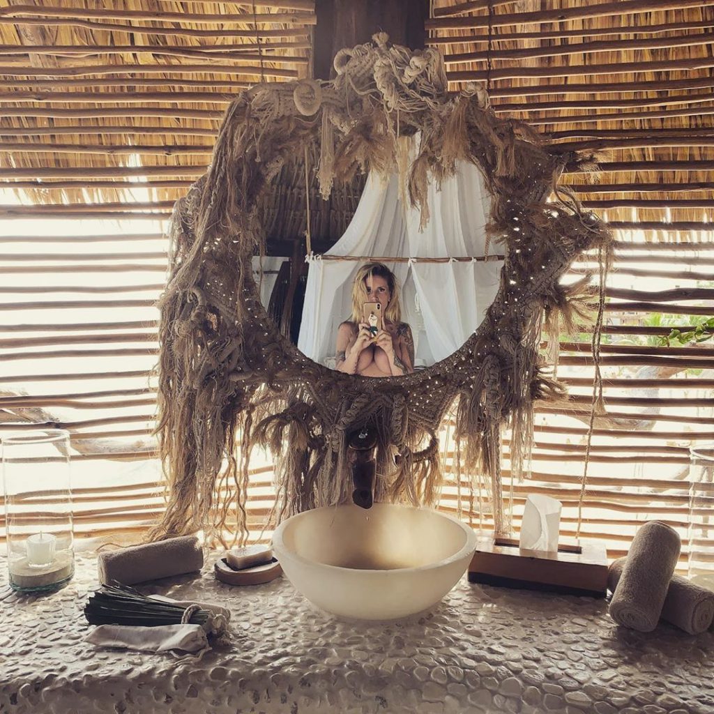 Desde aquel lugar de ensueño la actriz compartió unas imágenes tremendas que dejaron a más de uno sin aliento. “Tan bello este paraíso”, escribió al pie de unas fotografías que la muestran totalmente desnuda y apenas cubierta con un cortinado blanco para evadir así la censura de la red social.