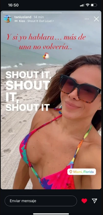 La mujer tiene la cuenta de Instagram en privado, por lo que de momento mucho más no se sabe de ella. Lo que sí parece ser claro es su reacción ante el escándalo entre Evangelina y el nexo con Demichelis, ya que por estas horas publicó una selfie que se tomó desde la playa de Miami, en bikini y con lentes de sol, con una letal frase que parecía ser dirigida hacia la modelo: “Y si yo hablara... más de una no volvería".