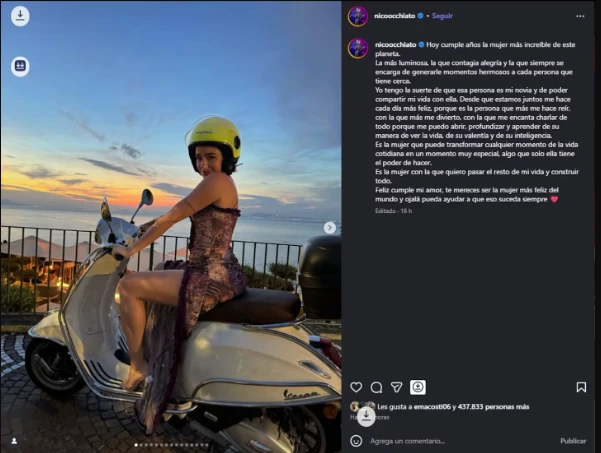 Nico no vaciló en gritarle al mundo todo lo que siente por Flor y redactó en su cuenta oficial de Instagram: “Hoy cumple años la mujer más increíble de este planeta, la más luminosa, la que contagia alegría y genera momentos hermosos a cada persona que tiene cerca”.