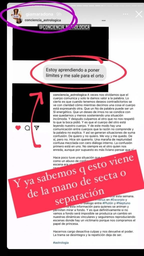 Asimismo, la hermana de Dalma comenzó a publicar en sus historias de Instagram varias frases y escritos sobre la reflexión y el bienestar personal, y encendió todas las alarmas al publicar un mensaje sin destinatario, pero que todos sus seguidores entendiendo que iba dirigido hacia el exfutbolista.