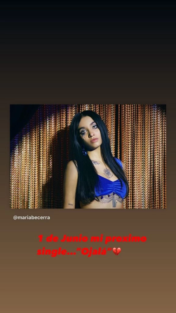 Pero María apostó a promocionar su nuevo single, Ojalá, que se lanza el 1 de julio que anunció con el significativo emoji de un corazón roto. y que, en su letra, enuncia como mensaje encriptado a su ex, que "ojalá no te haga lo que me hiciste aquella vez. Ojalá que te arrepientas siempre que quieras volver”. Habló sin hablar y dijo, quizá, mucho más de lo previsto.