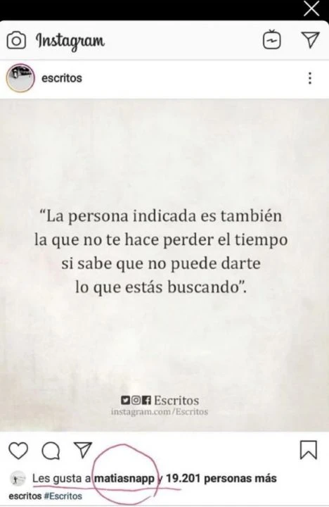 El periodista Ángel De Brito fue el encargado de compartir dicha imagen que proviene de una cuenta de Instagram de frases de amor y desamor. La misma citaba: “La persona indicada es también la que no te hace perder el tiempo si sabe que no puede darte lo que está buscando”.