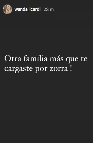 “¡Otra familia que te cargaste por zorra!”, fueron las palabras que eligió Wanda para colocar sobre un fondo gris y dejar a todos sus fanáticos consternados y dubitativos sobre a quién estaba dirigido.