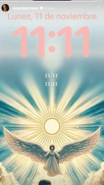 Suárez realizó el primer movimiento, compartiendo una foto en su Instagram con una captura del fondo de pantalla de su celular, en la que además de verse una imagen religiosa, se distinguió un dato particular del reloj: marcaba las 11:11 horas del día 11 del noviembre (mes 11). Esto tiene relación con las llamadas horas espejo, portal energético que son manifestaciones de los ángeles para nuestras vidas y para el amor.