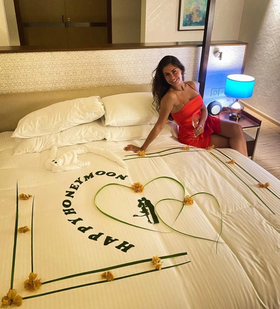 Enamorados del lugar, tanto como el amor que los unió y que llevó a pasar por el altar, pasaron los días en un hotel en el mar donde, desde el subsuelo del lugar, vieron de cerca las profundidades del agua y todas sus criaturas marítimas.