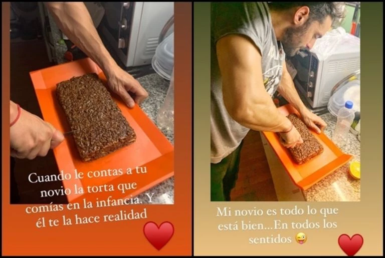 Despojados de cualquier tipo de prejuicios y críticas, la flamante pareja que hace rato se muestra junta también empezó a hacerlo en las redes. Y fue por esa vía que Rojas contó que, tras haber deslizado el comentario de que tenía muchas ganas de comer una torta que solían hacer en su casa cuando era chica, su noviecito le dio el gusto.
