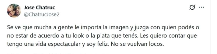 Diversos usuarios se sintieron en el derecho de opinar y le vertieron recriminaciones innecesarias. Por eso, Chatruc aportó su lectura de esos comentarios hirientes. “Es espectacular Twitter. Hay miles de personas diciéndome feo, mono, pelotudo. Ja,ja,ja”, manifestó.