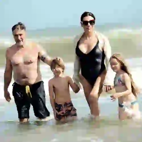 Por eso, los Goycochea en pleno llegan al balneario La Caseta, ubicado al sur de Mardel, dispuestos a disfrutar el día. Allí lo único importante es hacer vida familiar. Paul e Isabella aprovechan para jugar en el sector dedicado a los niños, mientras Florencia y Pablo toman sol, siempre atentos a los requerimientos de los nenes, que suelen ser muchos. Flor, como toda una madraza, toma sol con un ojo abierto, ya que no se desentiende ni un minuto de sus chiquitos. Pero claro, después de jugar solos un rato buscan la compañía de mamá y papá. Entonces van corriendo en su búsqueda con un pedido concreto: ¡vamos al mar! Sus caritas felices y sus sonrisas cómplices no le deja opción a Flor. No se resiste, simplemente los abraza y se deja llevar. Bienhumorada, se levanta de la reposera y sin quitarse la pashmina blanca que la cubre y que contrasta con el traje de baño enterizo y de color negro, la actriz se entrega al placer de disfrutar del mar con su esposo y sus hijos.