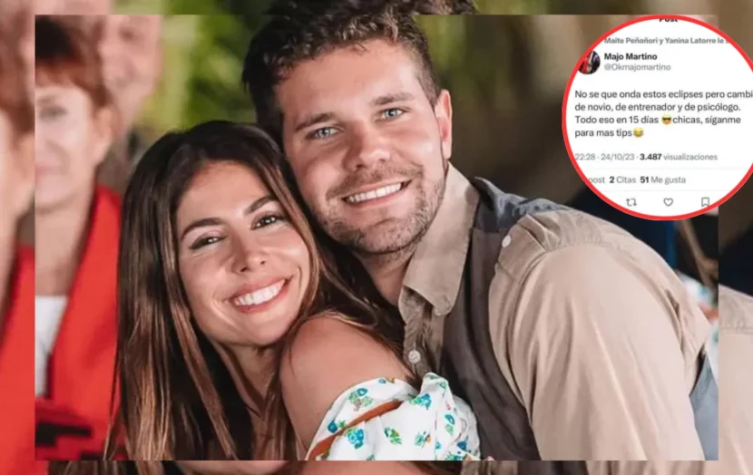 Ante este nuevo capítulo en la vida de Majo posteó en su cuenta de X: “No sé qué onda estos eclipses pero cambié de novio, de entrenador y de psicólogo, todo eso en 15 días, chicas síganme para más tips”. Luego de que varios usuarios etiquetaran a Locho decidió eliminarlo y publicar en su lugar otra cosa.“No sé qué onda estos eclipses pero me separé, cambié de entrenador y de psicólogo, todo eso en 15 días, chicas síganme para más tips”, se replanteó.