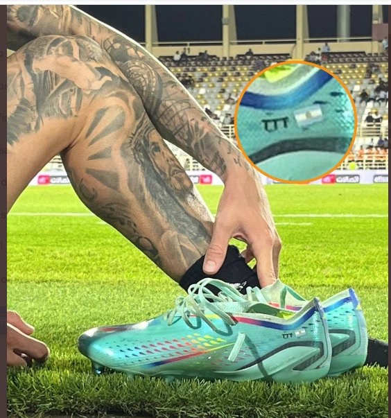 ¿Qué sucedió? En el marco del amistoso que Argentina le ganó a Emiratos Árabes Unidos, el mediocampista se encargó de mostrar sus botines. ¿Y? Lo peculiar se encontraba en la zona del talón, donde mandó a diseñar y estampar un guiño para su novia.
