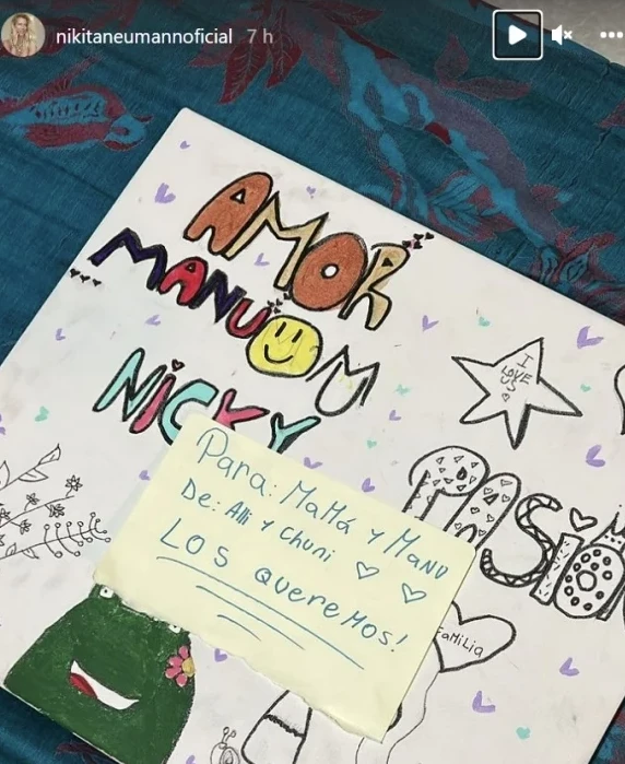 Nicole Neumann compartió el dulce dibujo que le hicieron dos de sus hijas con Fabián Cubero dedicada a ella y a su pareja con Manu Ucera.