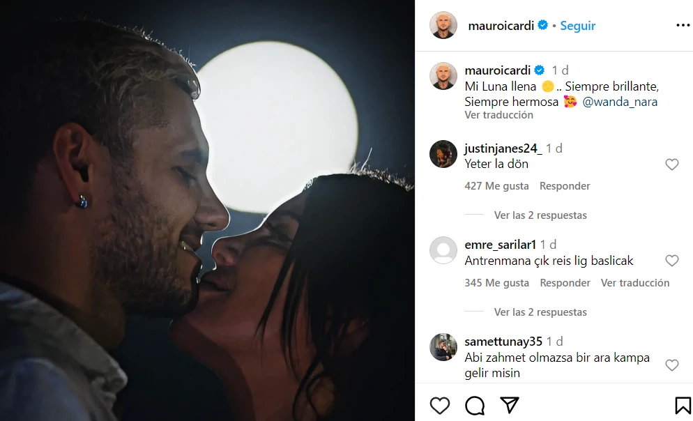 Lo que más llamó la atención de esta publicación es que Wanda Nara solo le puso like al posteo, pero no le comentó nada a su esposo y fue un detalle que no pasó desapercibido. Aunque sí comentó el comentario de una usuaria donde escribió un fragmento de la última canción que sacó.