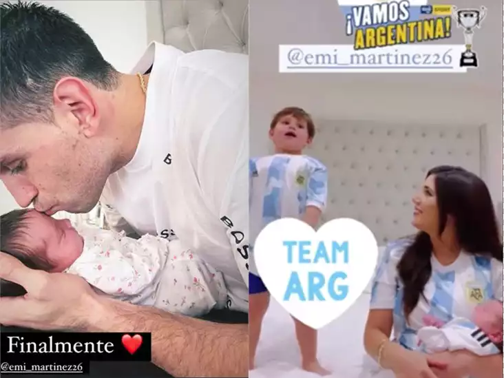 Si lo de Dibu fue heroico, lo de su esposa estuvo en un nivel superior incluso. ¿Por qué? Por la simple razón de que se bancó sola el último tramo del embarazo y de la misma manera fue a parir. Fue, si se quiere, la verdadera heroína de la pareja. Aún con los dolores y las molestias lógicas del caso, ella se grababa entera para darle fuerzas a su marido y le deseaba buena suerte en los partidos.