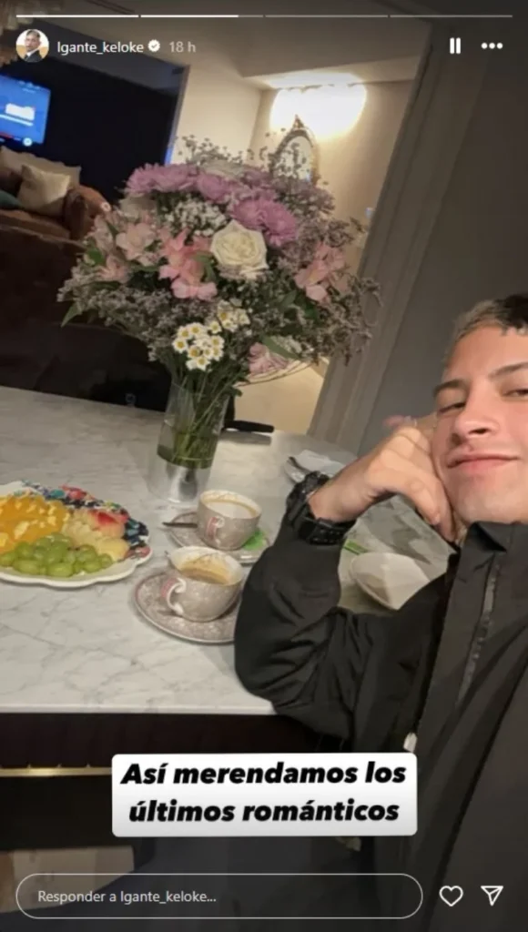 A través de sus redes sociales, ambos dieron a conocer momentos de intimidad y complicidad. Elian Valenzuela publicó una imagen desde el departamento de Nara donde se lo ve sentado a la mesa con dos tazas de café y un plato de frutas. Acompañó la foto con la frase: “Así merendamos los últimos románticos”.