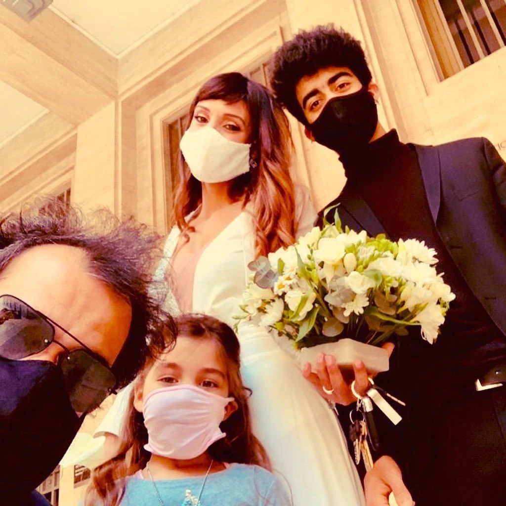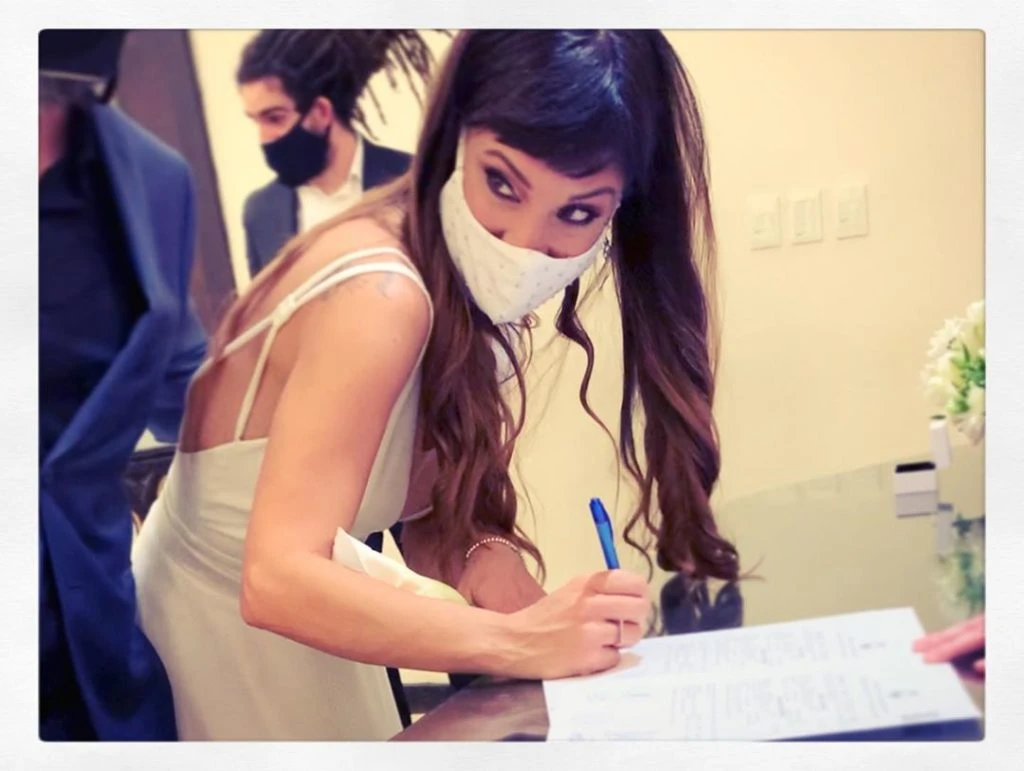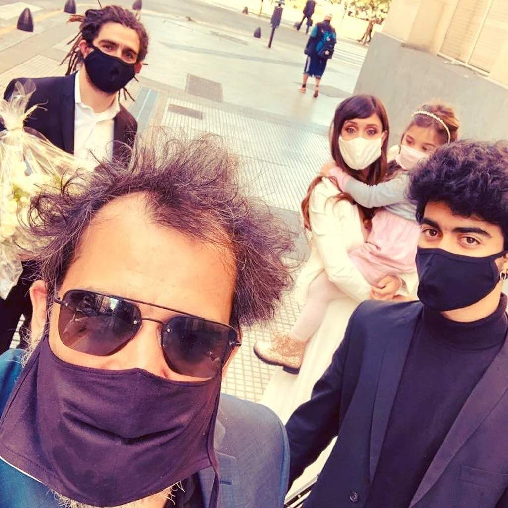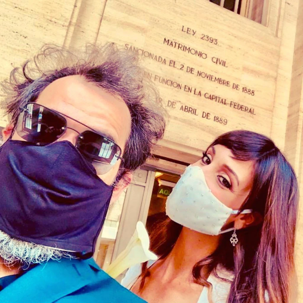 Sin grandes celebraciones por las limitaciones de la cuarentena, la pareja pasó por el registro civil de Capital Federal y selló su amor frente a sus hijos.