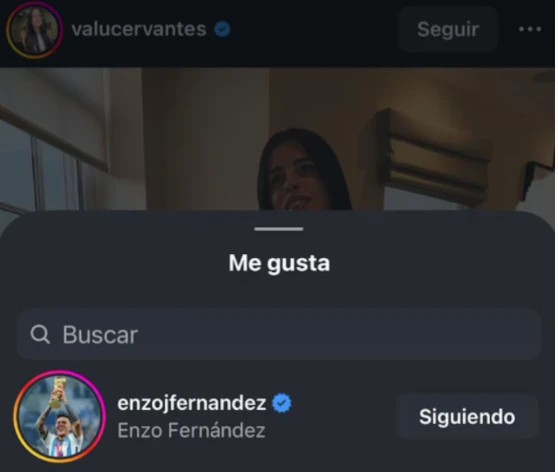 Rápido de reflejos, el crack del elenco de Lionel Scaloni no demoró ni un segundo en dejar su huella, en soltar la evidencia, porque le regaló inmediatamente su like. Ese gesto se interpretó como una activación de nueva confianza y complicidad entre Valu y Enzo.