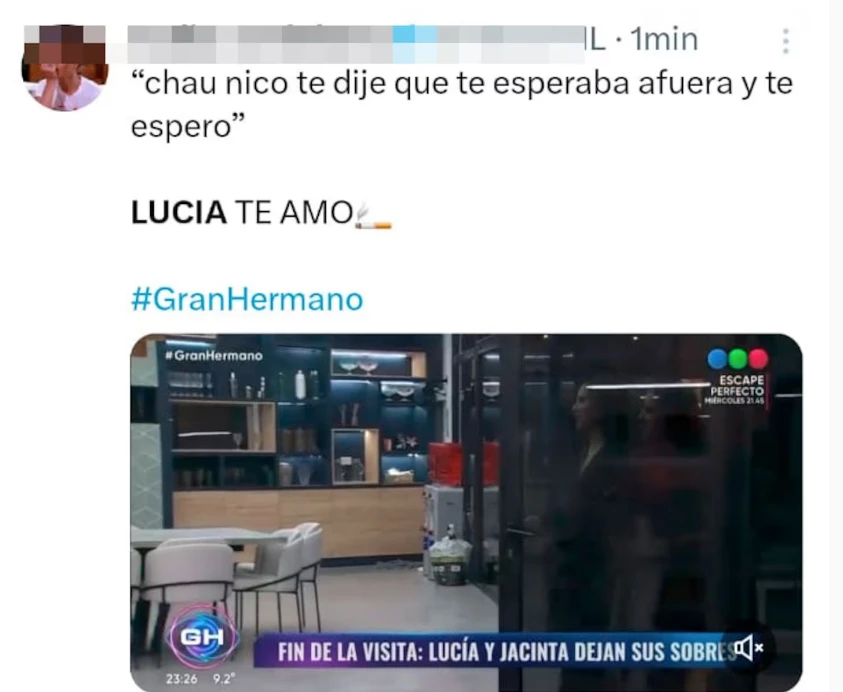 LAS REDES SE EXPRESARON TRAS EL REENCUENTRO DE LUCIA CON NICOLAS EN GRAN HERMANO