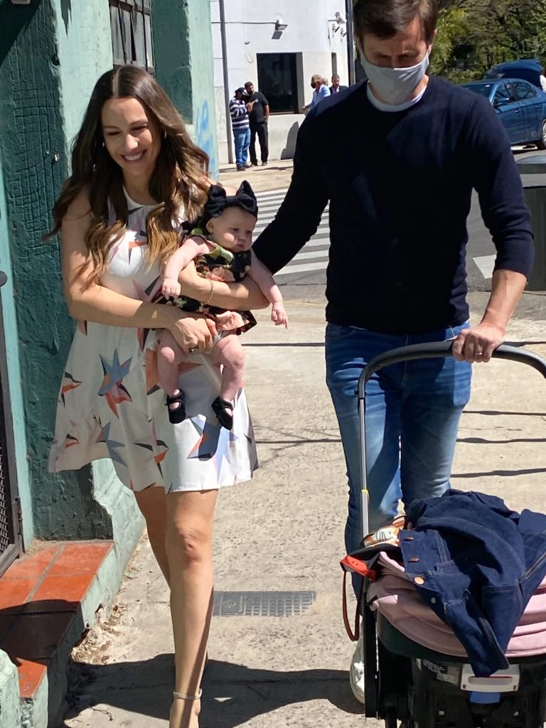 La modelo y el empresario -pertenece al rubro gastronómico- se complementan para llevar a la beba de un lado a otro. No la descuidan, claro: Anita tiene apenas dos meses y cualquier enfriamiento puede derivar en un molesto dolor de cabeza. Como decían las abuelas, mejor prevenir que curar.