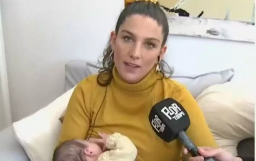 “¡Verdadero! No es tarea fácil”, escribió la actriz sobre una imagen en donde se la ve sonriente y abrazada a Sebastián mientras cargaba en sus brazos a Belisario desde la clínica.