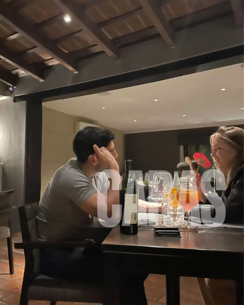A través de unas fotos que publicó la revista Caras, se vio una botella de vino en el comienzo de la cena. Sujetando Facundo su mano, intentó tapar su rostro al darse cuenta que había cámaras que lo estaban captando fuera del lugar.