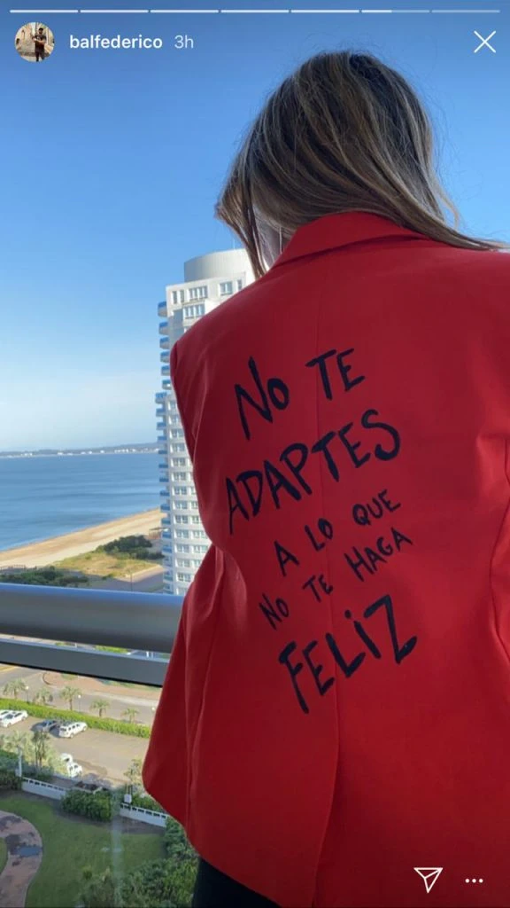 Por otro lado, publicó una sorpresiva foto, en donde se ve a la misma mujer, dada vuelta, luciendo una campera roja con la descripción: “No te adaptes a lo que no te hace feliz”, pero no etiquetó a nadie ni muchos menos explicó con quien viajó al país vecino.