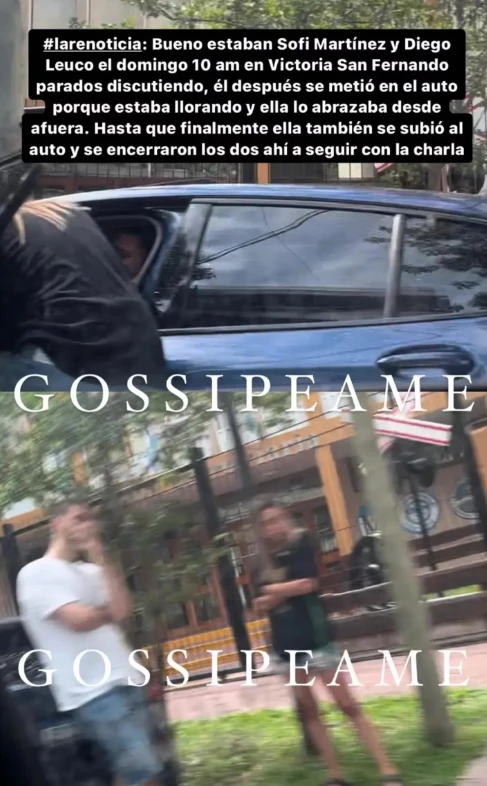 Fue Pochi de Gossipeame quien decidió publicar las imágenes que le enviaron sus informantes.“Estaban parados discutiendo, él se metió en el auto porque estaba llorando y ella lo abrazaba desde afuera”, explicó la panelista de Ciudad Magazine.