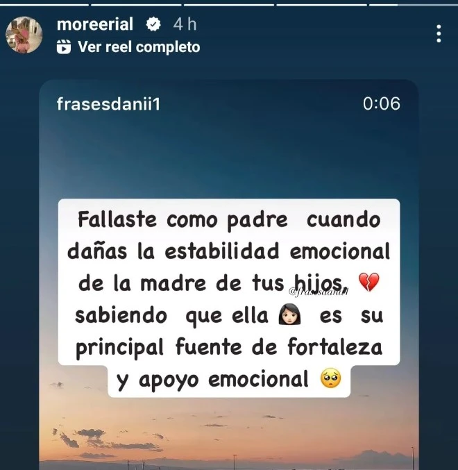 "Fallaste como padre cuando dañás la estabilidad emocional de la madre de tus hijos sabiendo que ella es su principal fuente de fortaleza y apoyo emocional”, apuntó la generadora de contenido a través de su cuenta oficial de Instagram.
