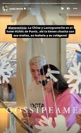 La imagen, que fue compartida por Pochis, la administradora de la cuenta de Instagram Gossipeame, generó una gran reacción en las redes sociales, donde los usuarios expresaron su sorpresa y alegría por la noticia: “La no noticia: la China y Lautygramcito en el hotel Huma de Punta. Ahí la tienen chocha con sus moños, su lookete y su colágeno”.