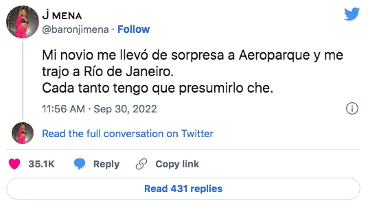 "La subida no la grabé ni saqué fotos porque no te dejan. Matías subió en una moto y yo en otra. Son como taxis moto. Y salió 5 reales cada una", contó Jimena, para luego agregar: "Pagamos 5 reales más cada uno y nos abrieron una puerta de reja para subir al morro Dos Hermanos. No es en absoluto un paseo o una caminata. Es una subida constante que ya arranca así y es realmente empinada", puntualizó la cantante.