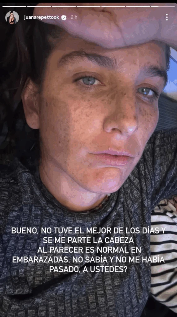 Más allá de su vida amorosa, Juana también compartió cómo atraviesa los síntomas de este embarazo. En sus redes, sorprendió a sus seguidores al confesar que está sufriendo fuertes dolores de cabeza. “No tuve el mejor de los días. Se me parte la cabeza. Al parecer es normal en embarazadas, no sabía y no me había pasado. ¿A ustedes?”, escribió en una selfie en la que se la veía cansada.