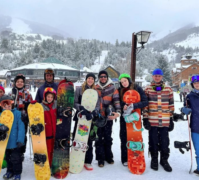 La pareja y sus niños recorrieron las instalaciones del Cerro Catedral. Hicieron esquí y snowboard, anduvieron en teleférico y armaron los típicos muñecos de nieve.