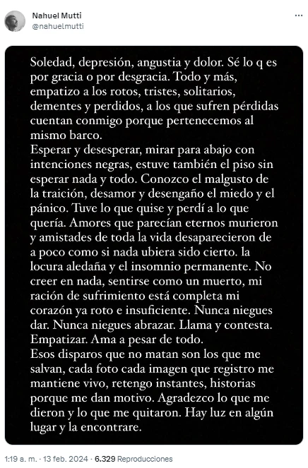 EL ANGUSTIANTE TEXTO QUE PUBLICÓ NAHUEL MUTTI