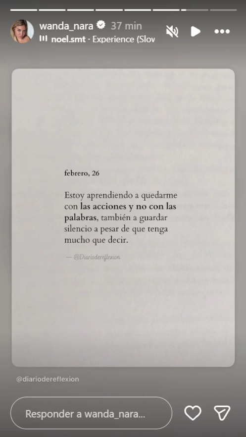 Este silencio tuvo finalmente una explicación. Este jueves, Wanda compartió una historia en Instagram con una frase que se interpretó como un mensaje a Icardi, incluso en tono amenazante. “Estoy aprendiendo a quedarme con las acciones y no con las palabras, también a guardar silencio a pesar de que tenga mucho que decir”, se puede leer.