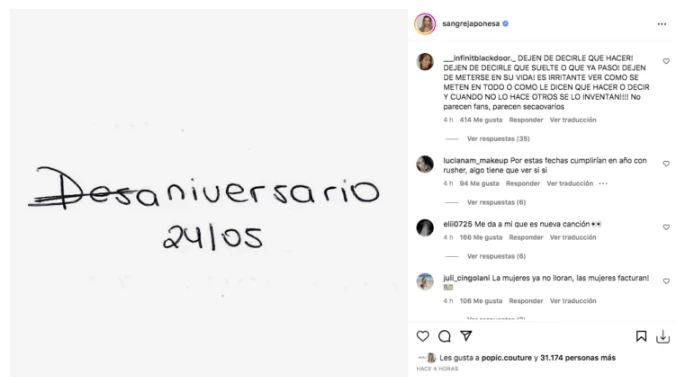 En las últimas horas, la China sorprendió con un posteo muy llamativo, con compendio corto de palabras que provocó un sismo y despertó la atención de usuarios y de los medios. Suáez subió un texto, que lucía escrito a mano que rezaba: “Des-aniversario. 24/5”. Por eso todo el mundo especuló que se trataba de un recordatorio de una fecha especial para la pareja.