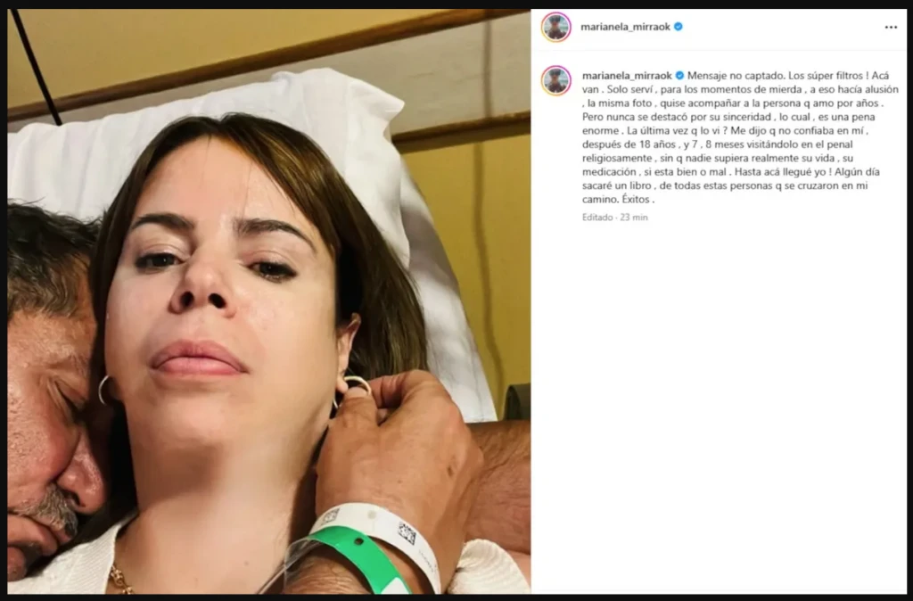 Pero eso no fue todo. Marianela fue aún más allá y reveló un dato que dejó al descubierto lo que venía atravesando en silencio: “La última vez que lo vi, me dijo que no confiaba en mí. Después de 18 años y 8 meses visitándolo en el penal religiosamente, sin que nadie supiera realmente su vida, su medicación, si está bien o mal. Hasta acá llegué yo”.