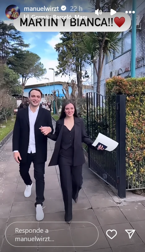 Manuel Wirzt está feliz y exultante, emocionado con el importante paso que acaba de dar su hija Bianca con su pareja, Martín. Es que la joven, de tan solo 21 años, decidió casarse con su novio. “Que se cumplan tus sueños”, fue la canción que Wirzt eligió de fondo para mostrar en sus redes uno de los momentos cruciales del día: el del arroz.