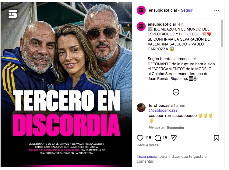 En Twitter se viralizaron posteos de diversas cuentas que instalaron la posibilidad de la aparición de un tercero en discordia y se trata de un nombre con peso específico. Según algunos usuarios, Salcedo habría iniciado un romance clandestino con un ídolo de Boca Juniors.