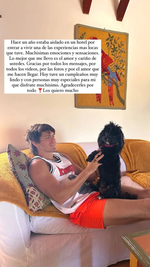 Marcos confirmó que su amor es Mora, la perra que adoptó cuando estuvo en Gran Hermano. “Hace un año estaba aislado en un hotel por entrar a vivir una de las experiencias más locas que tuve. Muchísimas emociones y sensaciones", escribió.