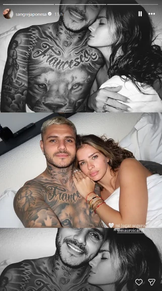 A través de sus historias de Instagram, la China subió un fogoso collage de dos fotografías junto a Mauro. En una, en color, se los ve recostados sobre la cama, ambos mirando a cámara y sonriendo. En la otra, en blanco y negro, ella con los ojos cerrados y como si se estuviese entregando al amor del futbolista. Una imagen que buscaba mostrar su intimidad en la cama, minutos después de haber tenido sexo de reencuentro.