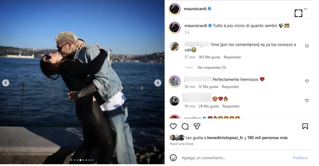 ¿Y? El eje se centra en que los dos aparecen en suelo italiano y sobre todo en el texto que le agregaron en Instagram: “Tutto è più vicino di quanto sembri”. Esas palabras significan ‘todo está más cerca de lo que parece’. Lo que se interpretó como una amenaza al divorcio en el que Icardi se percibe ganador.