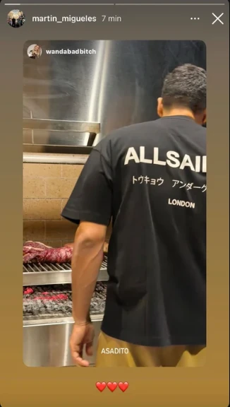 Definitivamente Wanda no deja de sorprender. Este domingo, a través de su cuenta secundaria @wandabadbitch, compartió una imagen fuerte donde se lo puede ver a Migueles en la parrilla, haciendo un asado. Se lo puede ver de espaldas, pero todo encajó más aún cuando el propio empresario reposteó la foto.