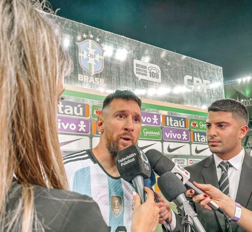 Fue al final del evento deportivo, como todo lo acumulado por los conflictos mencionados, que Martínez entrevistó a Messi en una suerte de mini rueda de prenda que compartió con otros canales a un costado del campo de juego. Con las seriedad que ameritaba la situación después de todo lo sucedido, mantuvieron un cordial intercambio de preguntas y de respuestas.