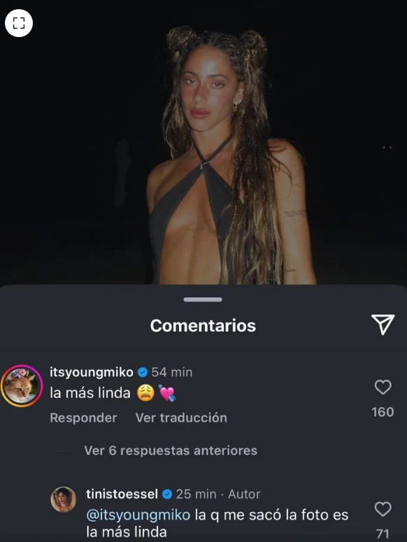Fue en las redes sociales de Tini que la ex de Rodrigo De Paul compartió una amorosa postal con Young Miko, quien se hizo popularmente conocida en el país por su colaboración con Bizarrap en la Session 58, en donde se las ve abrazadas, compartiendo un tierno momento de contacto físico.