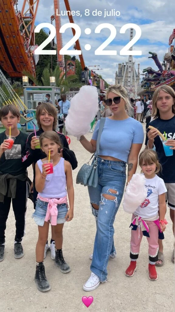El recuerdo de un momento feliz en familia en el que están presentes sus cinco hijos: Valentino, Constantino, Benedicto, Francesca e Isabella, las pequeñas que tuvo con el futbolista del Galatasaray. Luego, Wanda compartió un mensaje de apoyo de L-Gante y mostró cómo arrancó el 9 de julio. “Festejando la independencia”, precisó.