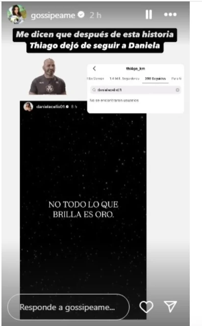 Evidentemente en la interna del vínculo acontecieron cuestiones, detalles desconocidos, que impulsaron a Thiago a ejecutar un movimiento fuerte, irreversible, que lo detectaron en el universo de las plataformas digitales. El que se podrían comprender como una sintomatología absoluta de un descontento.