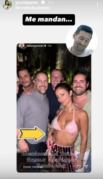 La foto en cuestión la difundió Pochi de Gossipeame, como parte de una postal que no tardó en viralizarse. Allí se la puede ver a Sánchez muy sonriente, rodeada de amigos, mientras el empresario aparece por detrás tomándola de la cintura.