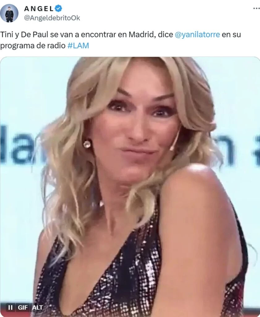 En su programa de radio, la panelista detalló lo que harán Rodrigo y la artista. En realidad, fue Ángel de Brito quien replicó las palabras de su compañera de LAM: “Tini y Rodrigo de Paul se van a encontrar en Madrid, dice Yanina Latorre en su programa de radio”.