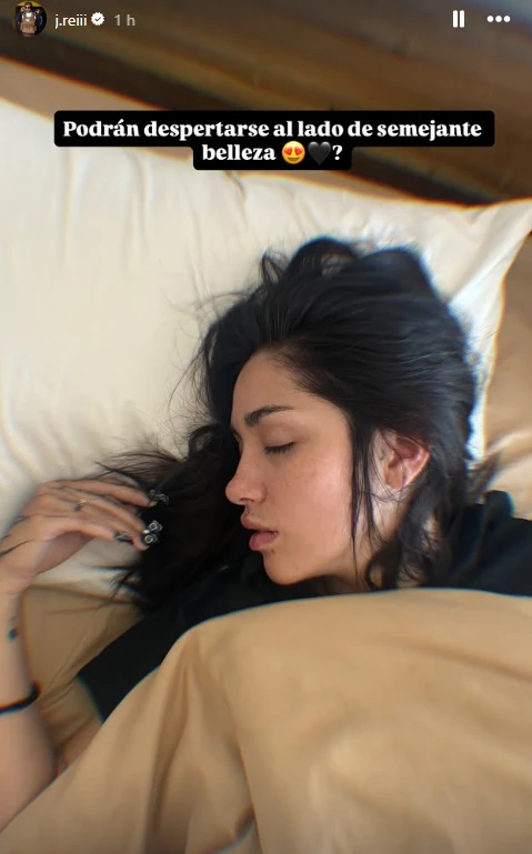 Mediante su cuenta de Instagram, J Rei decidió compartir una foto de María Becerra en la cama durmiendo. Fue entonces que escribió: "¿Podrán despertarse al lado de semejante belleza?". En la postal, se la ve a la morocha súper dormida, de costado, espléndida.