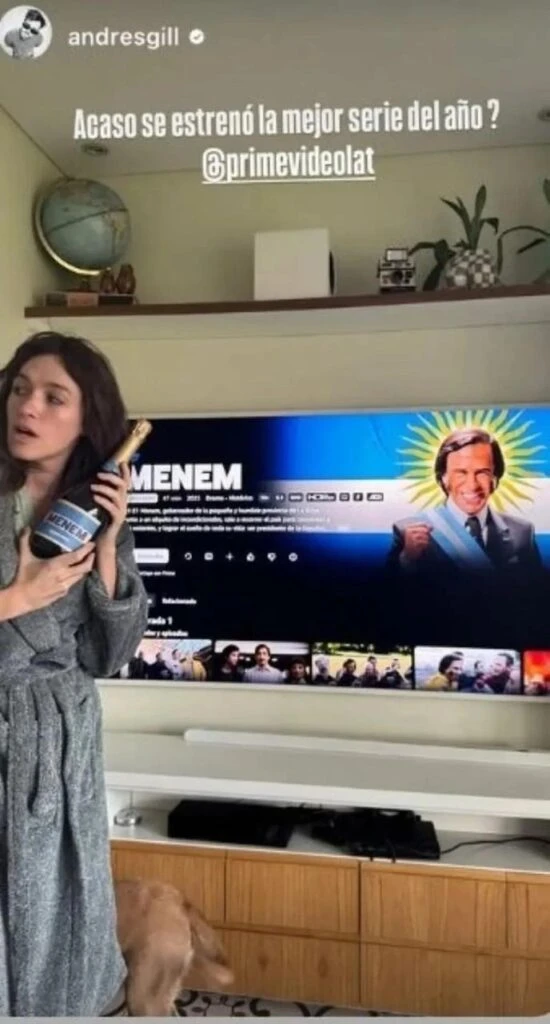 Para ello, el actor captó con su celular el momento en el que Cande estaba con un champagne en la mano, en bata y bien de entrecasa lista para ver la serie de Menem, donde participó. Posteo al cual la comunidad virtual que los sigue no tardó en reaccionar.